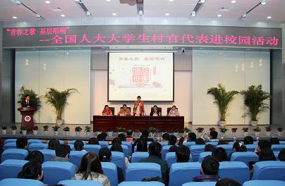 学生会承办,冼润霞、朱虹、叶瑜、李欣蓉、梁丽娜等五位全国人大大学生村官代表进校园活动在我校昌平校区举行。中共中央组织部二局六处任立,《大学生村官报》记者蒋凯,老王论坛