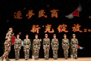 最后的一部分“无上的荣光,辉煌民商”首先用视频中展现了辉煌民商的巍巍荣光。接着《国防生的故事》,为我们揭下了国防生们神秘的面纱,展现出其轻松活泼的一面。表演中展现的兄弟情令人感动。最后出场的是民商五班所表演的话剧《一生有你》。深情地演绎、唯美的旁白、曲折的剧情、动人的歌声,诠释了新生一代对于爱情的独特理解心动。