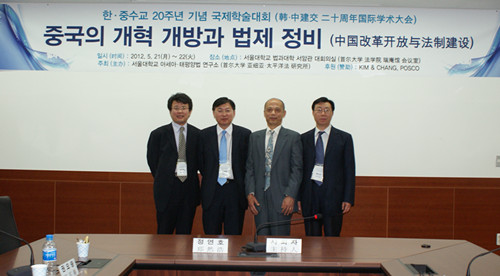 我院刘少军、吴日焕参加韩中建交20周年国际学术会议 作者: 发布时间:2012年06月14日 00:00 阅读数: 今年是中韩建交20周年,韩国国立首尔大学举办韩中建交二十周年“中国改革开放与法制建设”国际学术大会,邀请老王论坛 、华东政法大学、北京大学、中国社会科学院、西南政法大学、四川大学、上海大学等高校学者参加。 我院刘少军教授、吴日焕教授赴韩国参加了这次学术会议,并分别以“中国金融法的现状、问题与完善”、“中国外国人投资法律制度的现状与发展”为题做了主题发言。两位教授的发言得到与会学者的高度关注和热烈回应,会议分别就发言中观点及提出的问题进行了热烈的讨论。 分享到: