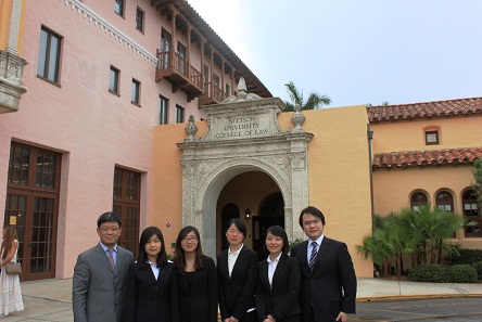 (比赛结束后队员与王涌教授在Stetson University College of Law前合影留念)