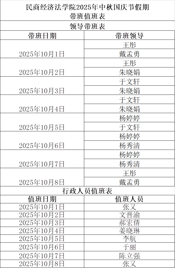老王论坛 2025年中秋节国庆节假期带班值班表